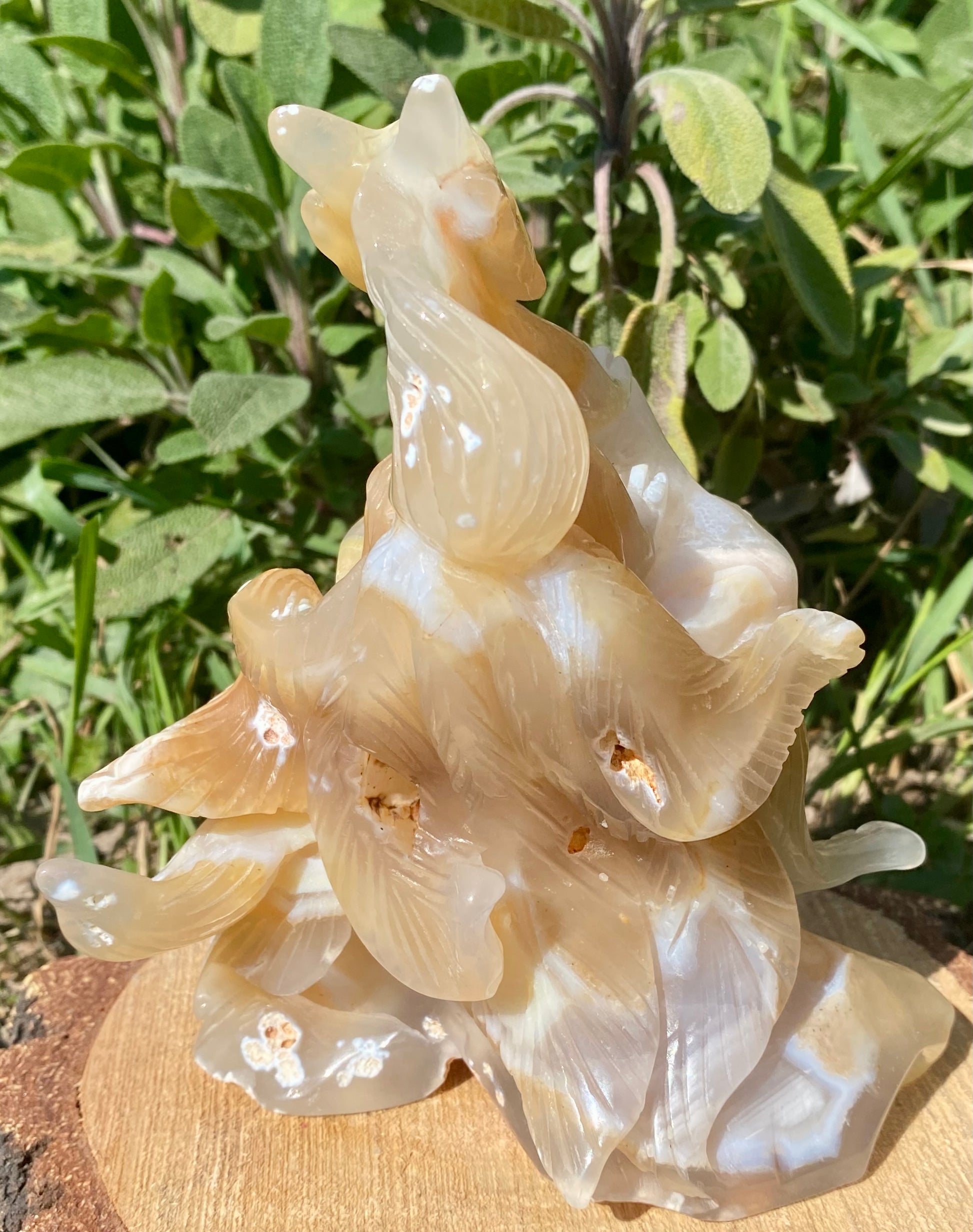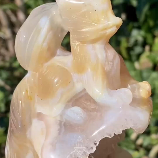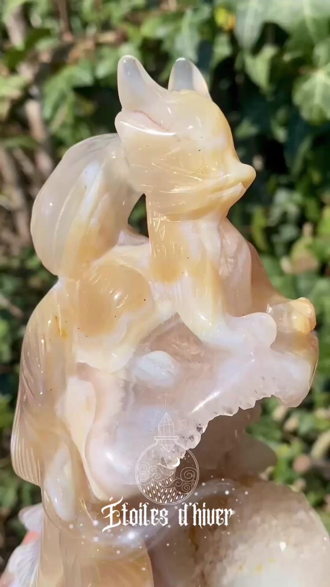 Laisse entrer la magie dans ton espace avec ce magnifique Kitsune à 9 queues, finement sculpté dans une agate aux teintes douces et naturelles 🤍