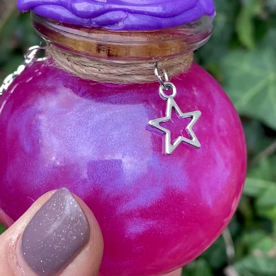 🌌 Un élixir scintillant aux reflets roses et bleus